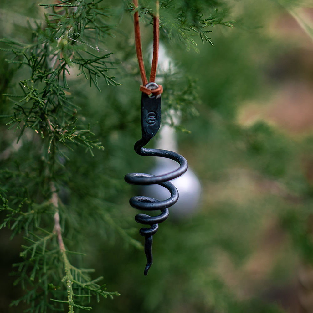 Our Blacksmith Spiral ornament brings a touch of authentic craftsmanship to your Christmas traditions. Each piece is hand-forged in our Arkansas forge using time-honored tools and techniques, where glowing steel is hammered and shaped into a graceful spiral form.