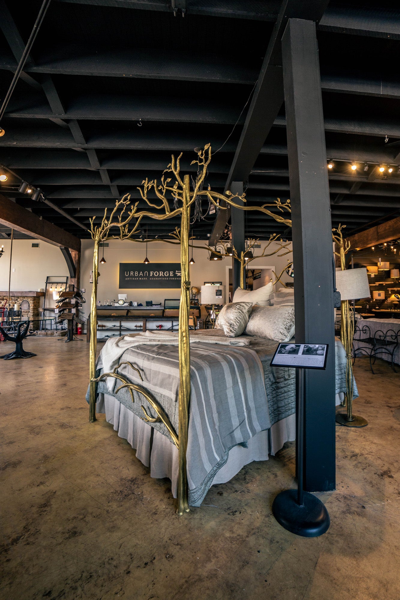 Come experience our flagship store in the heart of the beautiful, historic town square in Mountain View, Arkansas. Our 10,000 square foot stone building was built in 1929 and showcases a wide variety of Urban Forge iron furniture hand-forged by artisans just a few miles away at our forge. Browse our home furnishings and amazingly crafted damascus knives or talk with us about interior design or custom iron projects!
