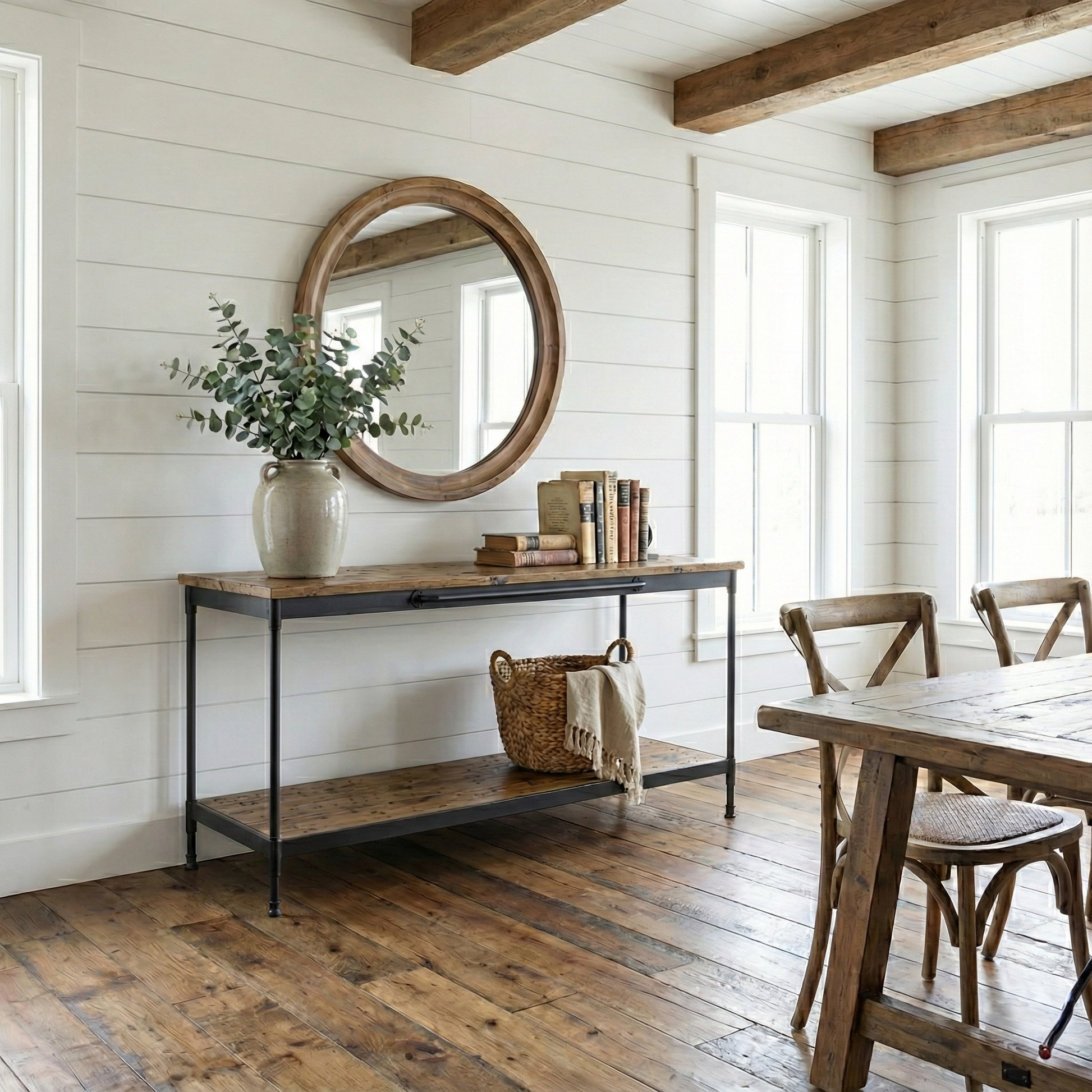 A handcrafted buffet table featuring clean lines, hammered iron textures, and timeless design... built to serve with both function and artistry.