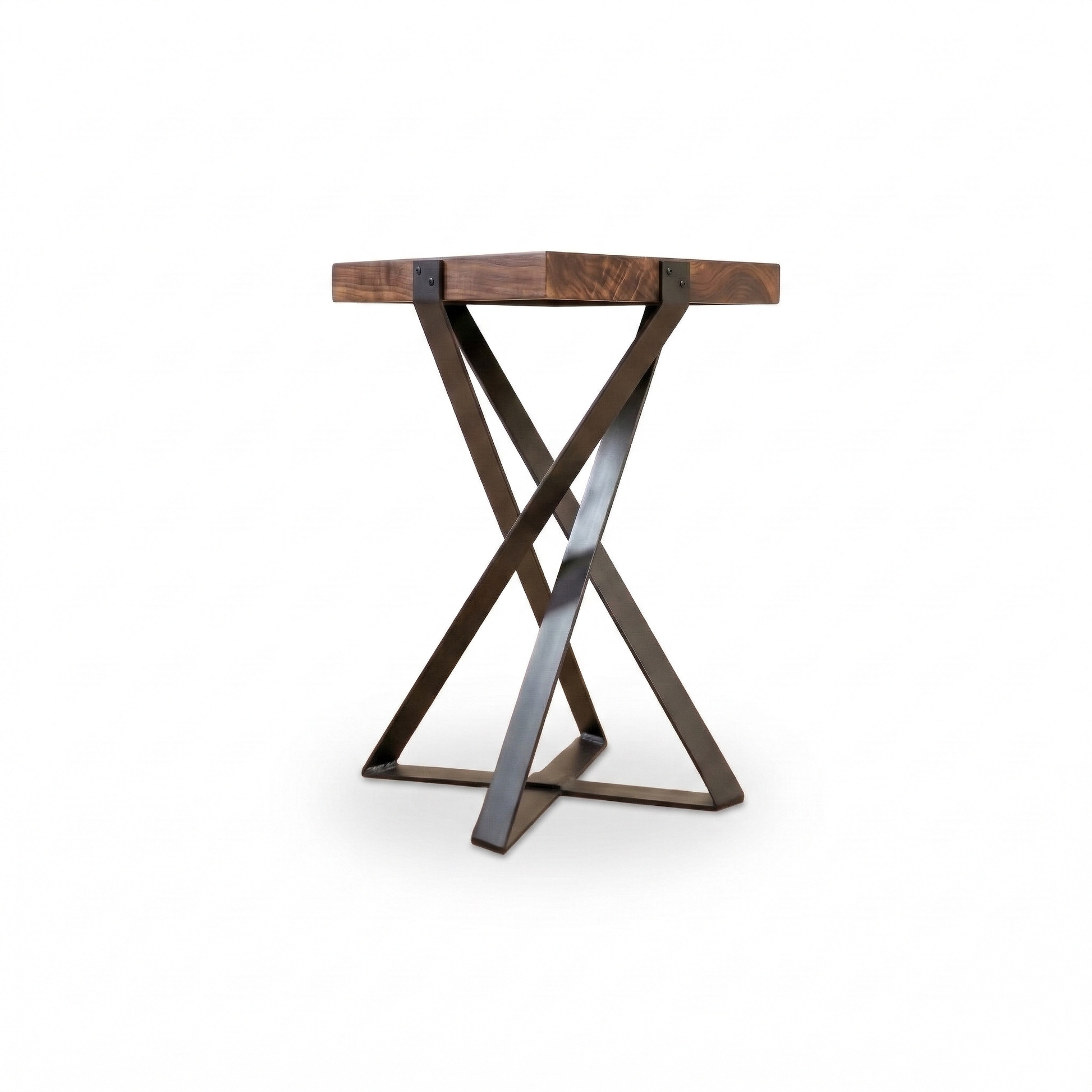 A hand-forged iron accent table with a twisted geometric base and square top... functional, artistic, and designed to stand out.
